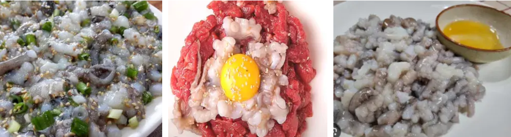 신선한 낙지를 양념장에 찍어서 낙지회로 즐길 수 있습니다. 생낙지의 신선한 맛과 식감을 그대로 느낄 수 있는 방법입니다.