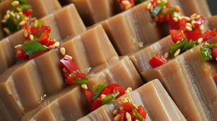 도토리묵을 끓인 물에 넣어 살짝 데치고 차가운 물에 헹구어 냉수에 담가 먹는 방식입니다. 담백하고 시원한 맛으로 유명하고, 청양고추와 함께 소금장에 찍어 먹는 것이 일반적입니다.