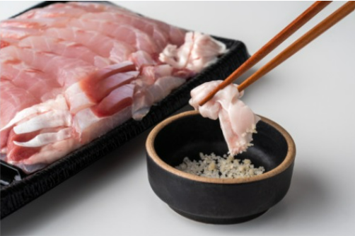 신선한 민어를 회로 먹는 것도 매우 인기가 있습니다. 민어를 얇게 썰어 신선한 야채와 함께 고추장, 와사비, 간장 등과 함께 즐길 수 있습니다.
